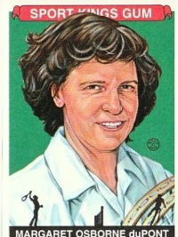 | Bio | Margaret Osborne duPont (born Margaret Evelyn Osborne) was a World No. 1 American female tennis player. DuPont won a total of 37 singles, women's doubles, and mixed doubles Grand Slam titles, which places her fourth on the all-time list despite never entering the Australian Championships. She won 25 of her Grand Slam titles at the U.S. Championships, which is an all-time record. An extraordinary deuce court player with uncanny instincts and a sturdy disposition, Margaret Osborne duPont ranks right up there in the upper crust of women’s doubles players. She took 31 majors in women’s and mixed doubles between 1941 and 1960. She was so accomplished in doubles that too many overlooked her capacity to play top notch singles, yet she garnered six Grand Slam championships on her own. Osborne duPont was an exemplary sportswoman with a knack for handling tense moments with extraordinary poise. DuPont won six Grand Slam singles titles, saving match points in the finals of the 1946 French Championships (versus Pauline Betz Addie) and 1948 U.S. Championships (versus Louise Brough). In terms of games played, the 1948 final at the U.S. Championships is the longest women's singles final ever played at that tournament (48 games). DuPont teamed with Brough (later Louise Brough Clapp) to win 20 Grand Slam women's doubles titles, which ties Martina Navratilova and Pam Shriver for the most Grand Slam titles ever won by a women's doubles team. DuPont and Brough won nine consecutive titles at the U.S. Championships from 1942 through 1950. They won that tournament 12 of the 14 years they entered as a team. Their 12 titles is an all-time record for a women's doubles team at the U.S. Championships, easily surpassing the four career titles won by the teams of Navratilova and Shriver, Doris Hart and Shirley Fry Irvin, and Sarah Palfrey Cooke and Alice Marble. DuPont won a total of 13 women's doubles titles at the U.S. Championships, which also is an all-time record, as is her 10 consecutive women's doubles titles at the U.S. Championships from 1941 through 1950. DuPont won more mixed doubles titles at the U.S. Championships than any other player. She won nine titles, including four with William Talbert (a record for a mixed doubles team at the U.S. Championships) and three with Neale Fraser. According to John Olliff and Lance Tingay of The Daily Telegraph and the Daily Mail, DuPont was ranked in the world top ten from 1946 through 1950, 1953, 1954, 1956, and 1957 (no rankings issued from 1940 through 1945), reaching a career high of World No. 1 in those rankings from 1947 through 1950. DuPont was included in the year-end top ten rankings issued by the United States Lawn Tennis Association in 1938, 1941 through 1950, 1953, 1956, and 1958. She was the top ranked U.S. player from 1948 through 1950. From 1938 through 1958, DuPont went undefeated in ten Wightman Cup competitions, winning her ten singles and nine doubles matches. She also captained the U.S. team nine times, winning eight. DuPont married William duPont, Jr. in 1947 and later interrupted her career to give birth to a son, William III. She was one of the few women to win a major title after childbirth but never played the Australian Championships because her husband would not let her. They didn't start to invite people down there and pay their expenses until I got married, and that was wintertime and Will's vacation time, and I just never got to go. He threatened to divorce me if I went to Australia, so I never went. He had that respiratory trouble, and he wanted me to come to California with him. He thought I should be with him. That was that. She later divorced duPont and formed a life partnership with fellow player Margaret Varner Bloss. She was inducted into International Tennis Hall of Fame in 1967. |