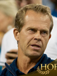 | Bio | A stylistic misfit among the Swedish legion that rose in Bjorn Borg's sneaker steps and image, Stefan Edberg has ever been an extraordinarily graceful attacker. A serve-and-volleyer, he has done superbly with only one hand propelling his backhand. Clay, on which he was reared, hasn't been his favorite surface, although he nearly beat Michael Chang in a five-set French final in 1989. A splendid junior career led to great expectations, which he fulfilled with six major singles - two each, Australian (1985, '87), Wimbledon (1988, '90), U.S. (1991, '92). In 1983 he became the lone achiever of a junior Grand Slam, winning the Australian, French, Wimbledon and U.S. 18-and-under singles. Making his Davis Cup bow in 1984, at 18, he was the youngest to play for a Cup winner (until Chang, a slightly younger 18 in 1990). Edberg performed a consequential one-day role in Sweden's startling upending of the U.S. in the final at Goteborg. He and Anders Jarryd clinched the 4-1 victory by stunning Peter Fleming and John McEnroe, unbeaten in 14 previous Cup starts, 7-5, 5-7, 6-2, 7-5. In successfully defending the Cup the following year in Munich, a 3-2 victory over Germany, Edberg won it at the wire, a thrilling, rebounding fifth-match decision over Michael Westphal. Though he didn't play in the 1987 final, he had an earlier hand in winning that Cup. A brilliant end-of-the-line backhand seized victory from Alexander Volkov at match point down in the fifth set as the 1994 Cup final began in Moscow. Turning that upside down for a 6-4, 6-2, 6-7 (2-7), 0-6, 8-6 win, Stefan set the tone in a 4-1 triumph, Sweden' fifth Cup. Having slipped below the standard he set for himself, he announced that the 1996 season would be his valedictory - Stefan had a good year, beating Chang at the French, playing all four to stretch his participation record to 54 straight major championship appearances at the U.S. Open, where he knocked off Wimbledon champ Richard Krajicek and made the quarters (a 25th time at that stage). Edberg, a slim 6-foot-2 blond right hander, was born in the seaside town of Vastervik, Sweden, Jan. 19, 1966, and was reared there. He lives in London with his Swedish wife, Annette. He had a hammering serve, as well as a difficult kicker and a raking backhand, and he is one of the finest of all volleyers. His groundstrokes improved continuously throughout his career. Outwardly unemotional, he dispelled doubts about his competitiveness by winning Wimbledon in 1988. He charged from two sets down to beat Miloslav Mecir in the semis, 4-6, 2-6, 6-4, 6-3, 6-4, and a set down to overcome favored Boris Becker, 4-6, 7-6 (7-2), 6-4, 6-2, for the title. His rivalry with Becker was a highlight of the '80s and '90s. At the close of his career, Becker was in the lead, 25-10. Beating the 1983-84 champ, countryman Mats Wilander, in the final, 6-4, 6-4, 6-3, Stefan took the Australian in 1985, his first major. He repeated two years later, the last man to win it on grass, 6-3, 6-4, 3-6, 5-7, 6-3 over Pat Cash. Flushing Meadow was almost the mystery to him that it had been for Borg (no titles in 10 tries). But on his ninth, Edberg came through for the U.S. crown in one of the most devastating final round performances, 6-2, 6-4, 6-0, over Jim Courier, holding serve throughout. Edberg, a first-round loser the year before (to Volkov) was the second in the tournament's history to spring from such ignominy to the title. Mal Anderson did so in 1957. Edberg refused to relinquish the title, beating Pete Sampras in the 1992 final. In the semis he overcame Chang, 6-7 (3-7), 7-5, 7-6 (7-3), 5-7, 6-4, the longest-lasting major match - 5 hours, 26 minutes. Edberg's last major final (his 11th) was at the Australian in 1993, when he lost to Courier. Stefan was inducted into the International Tennis Hall of Fame in 2004. Source:Bud Collins |